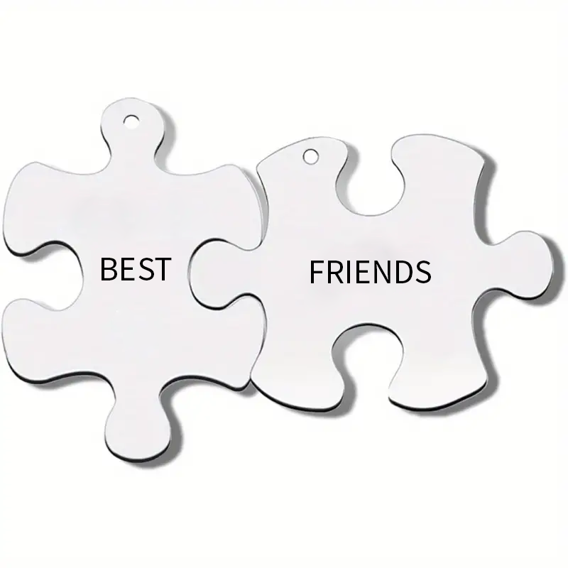OUR PUZZLE PIECE CHARMS CAN BE CUSTOMIZED WITH NAMES, SPECIAL SAYINGS OR TEAM LOGS.